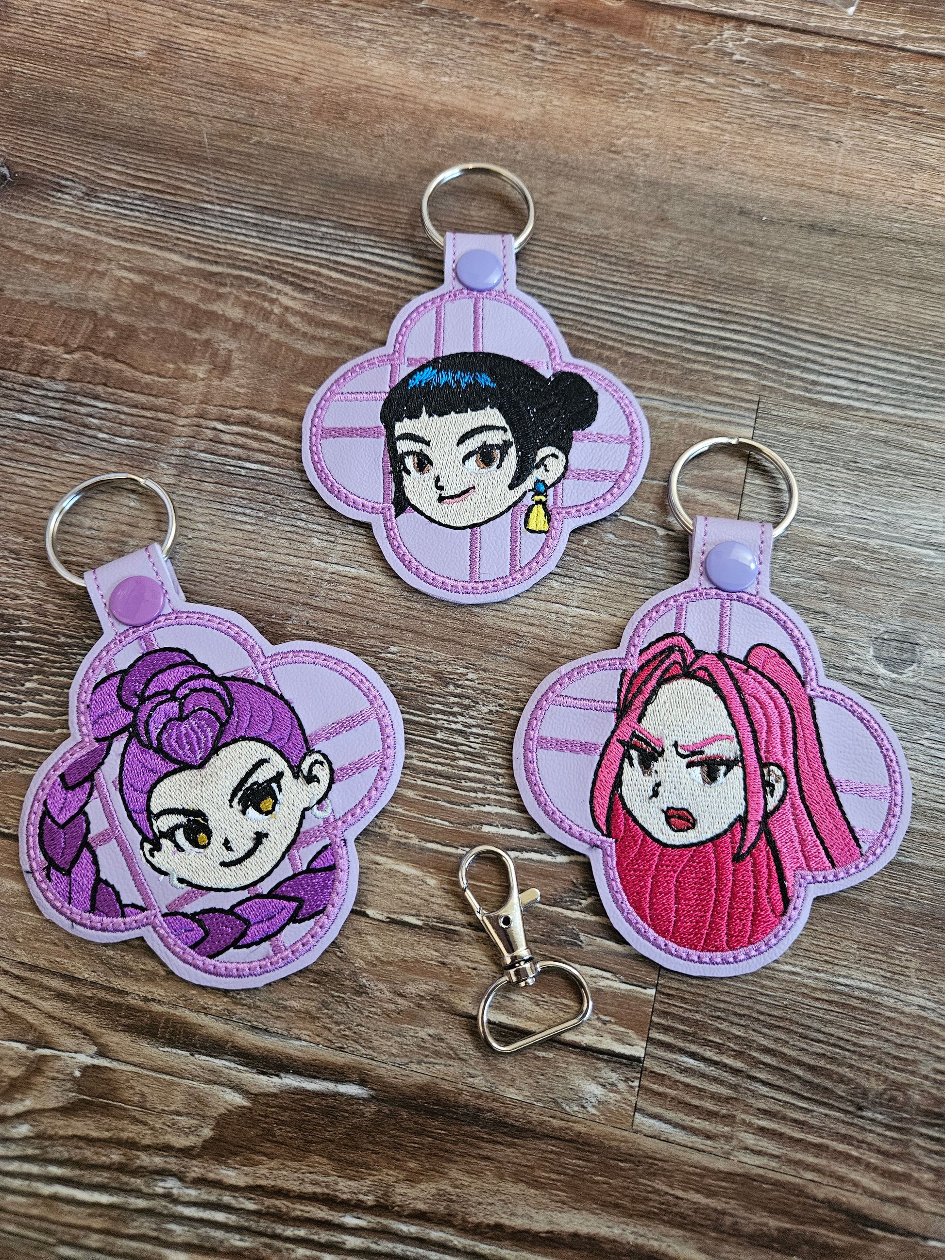 Each keychain is made from quality vinyl, both front and back, comes with a 32mm silver split key ring, and complimenting Kam snaps.